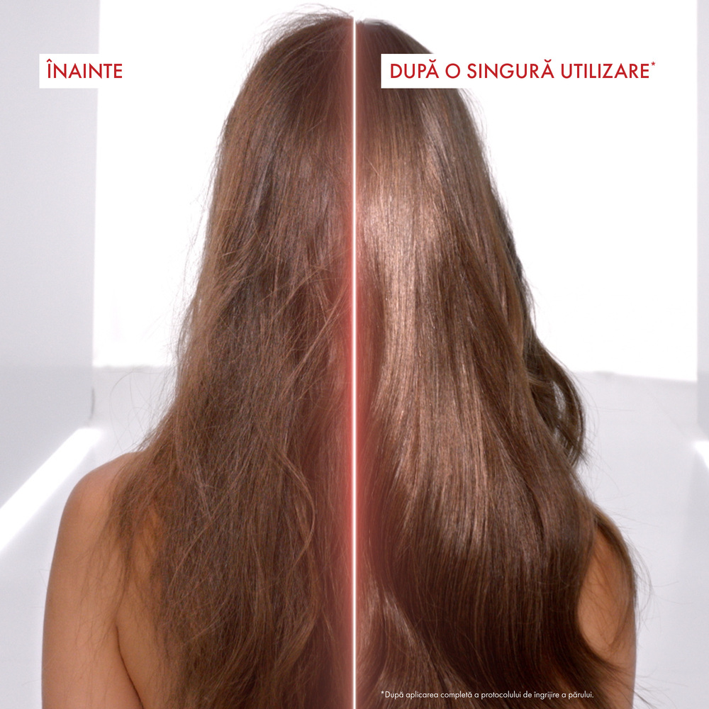 - balsam ultra-reparator, imbogatit cu peptide Pro-Colagen si acid citric, care actioneaza profund pentru a repara fibra capilara si a stimula productia naturala de Colagen 17*;