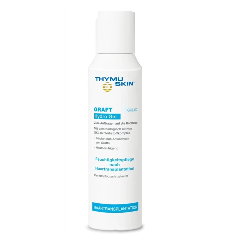 3. Dupa inchiderea ranilor, aproximativ a 3 a zi dupa transplant, folositi Thymuskin Hydro Gel pentru hidratarea scalpului si parului.