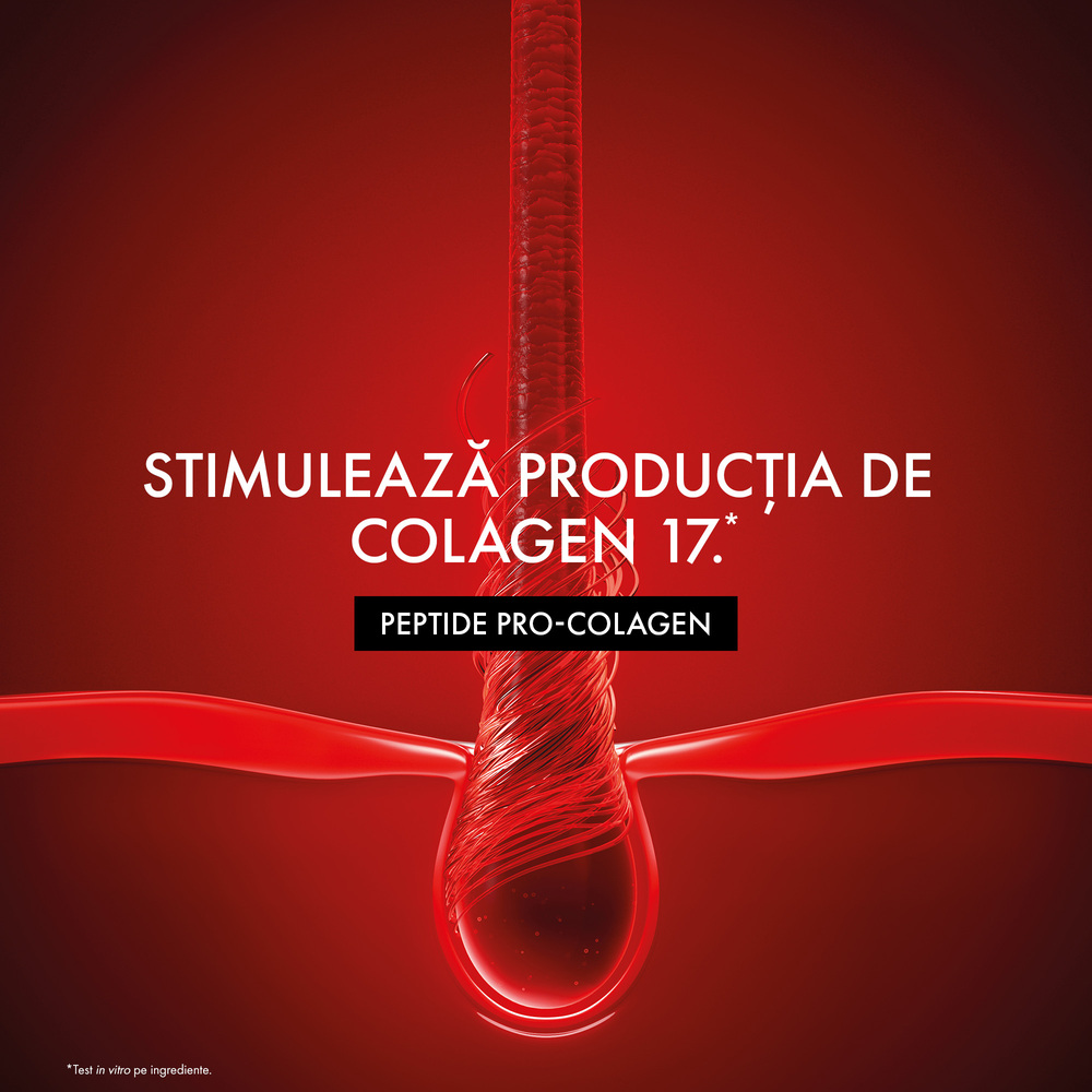 La baza inovatiei Dercos Collagen 17 Filler sta formula sa avansata, imbogatita cu Peptide Pro-Colagen si Acid Citric. Peptidele Pro-Colagen sunt ingredientul principal, conceput sa stimuleze direct productia naturala de Colagen 17*, esential pentru un par puternic si sanatos. Aceasta inovatie se materializeaza printr-un protocol complet care reduce eficient caderea parului cauzata de rupere si previne deteriorarea, oferind fibrei capilare o rezistenta sporita si un aspect revitalizat.