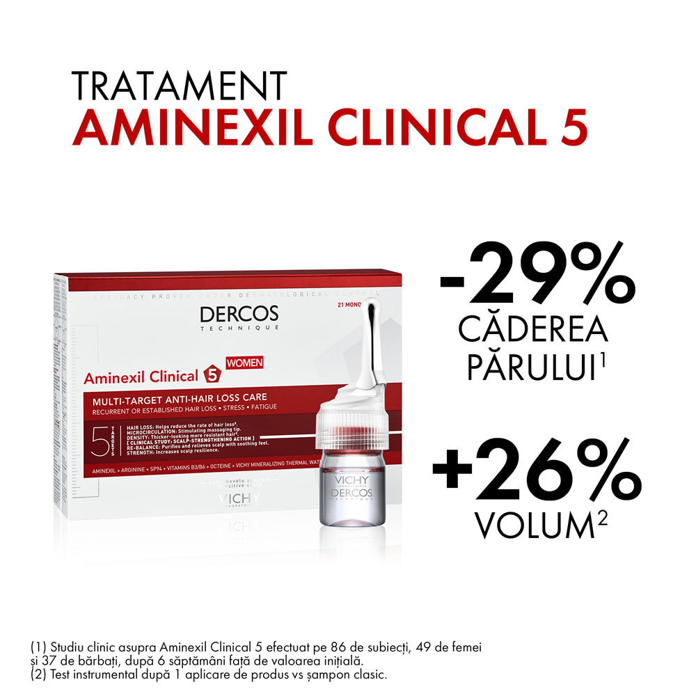 - o formulă exclusivă ce combină Aminexil, o moleculă de referință ce acționează împotriva căderii părului, cu eficacitate dovedită clinic, cu 5 ingrediente active, pentru o acțiune completă;