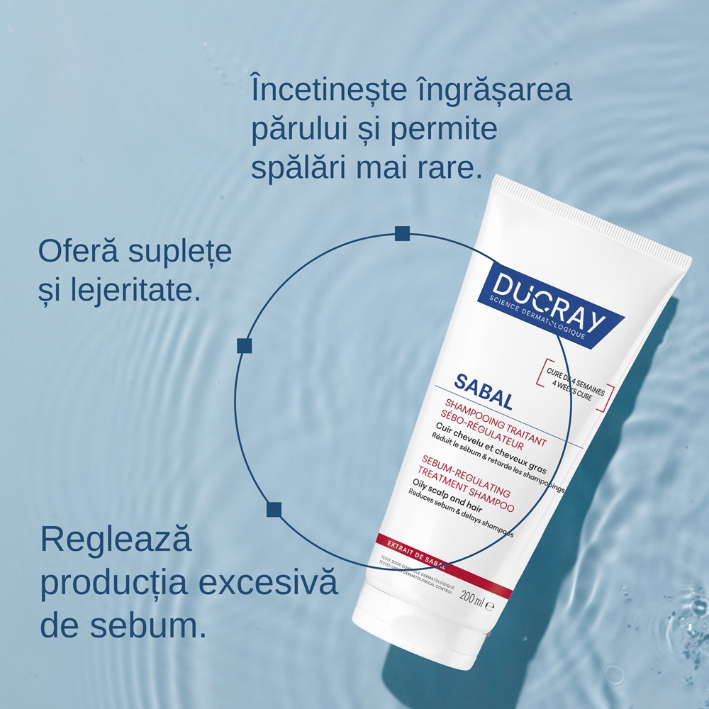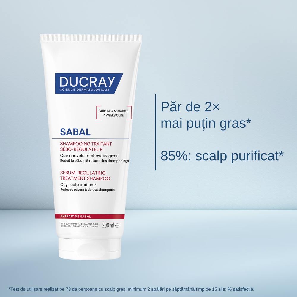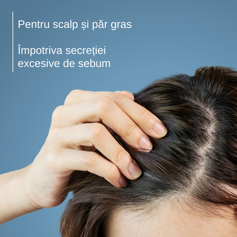 - este un produs pentru scalpul si parul gras, care regleaza productia de sebum si intarzie necesitatea spalarii, permitand distantarea frecventei pana la 3 zile;