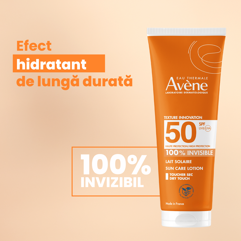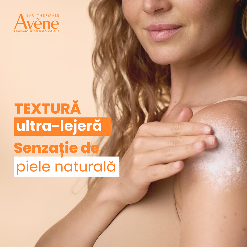 - imbina protectia inalta cu o experienta senzoriala placuta, datorita texturii sale laptoase ultra-lejere, care devine imediat apoasala aplicare;