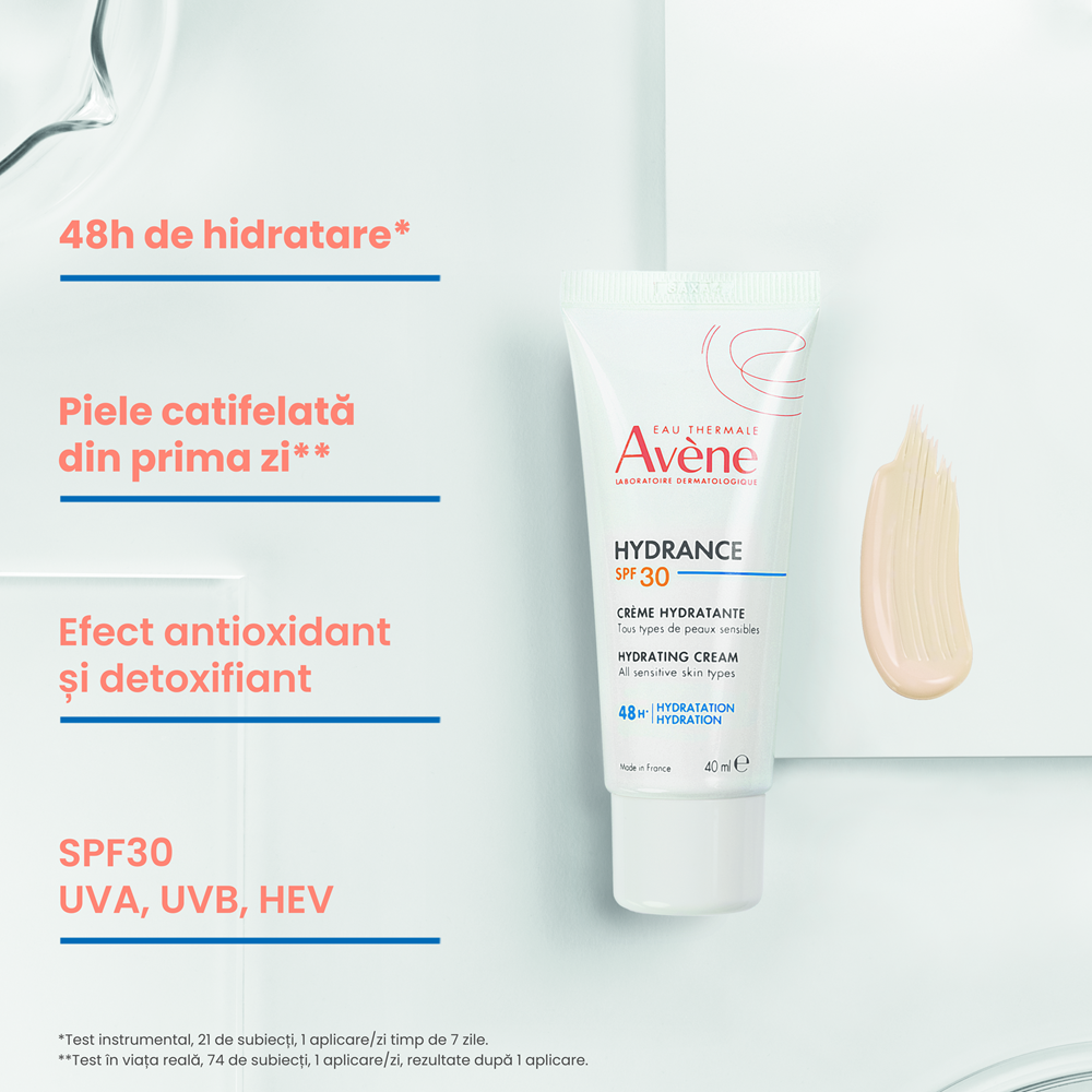 - ofera fotoprotectie ridicata SPF 30, protejand pielea impotriva UVB, UVA si luminii albastre HEV;