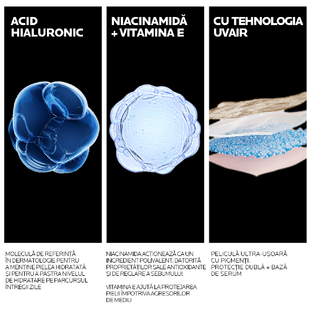 Ingrediente active:Niacinamida: antioxidant si regulator de sebum.