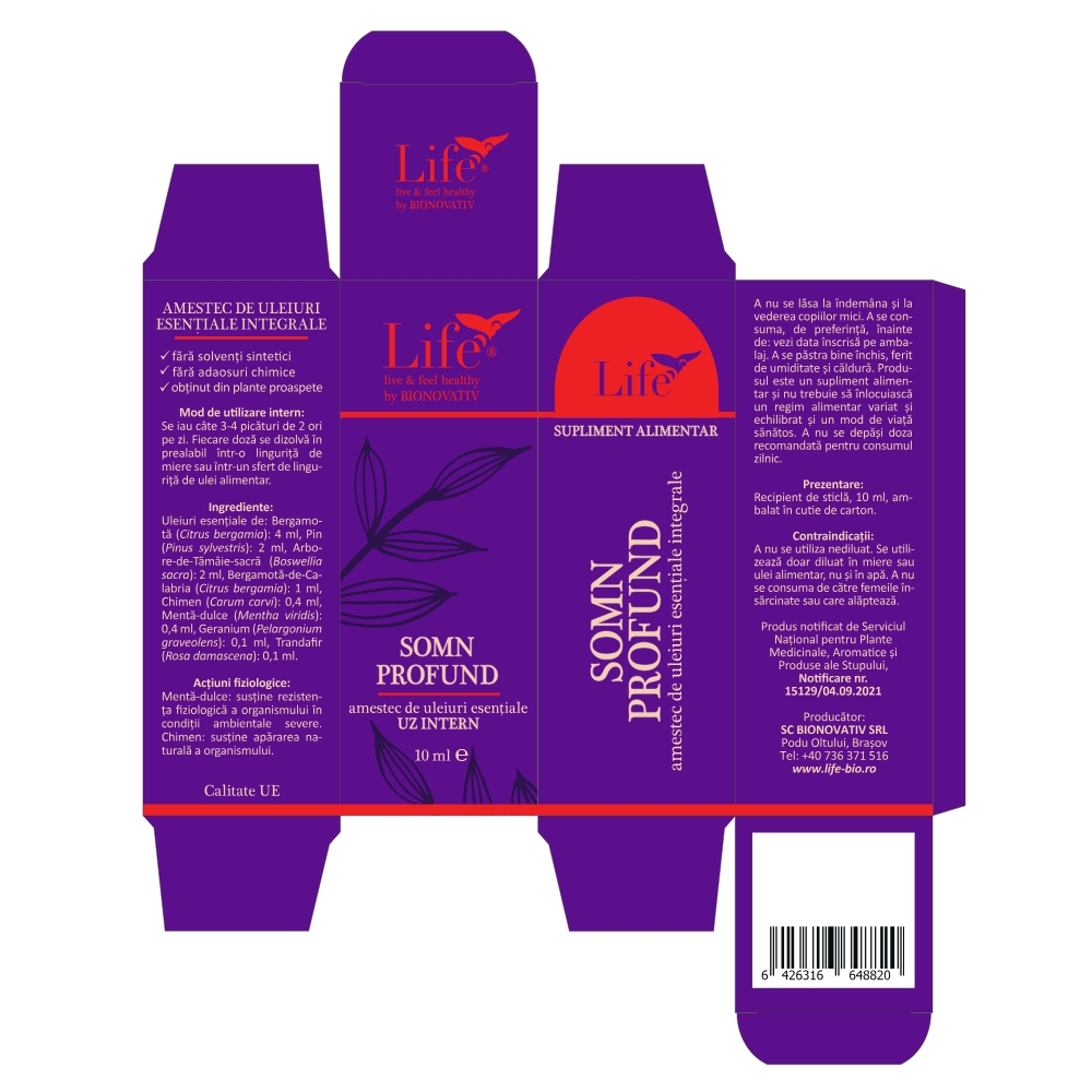 Amestec de uleiuri esentiale pentru uz intern Somn Profund Life, 10 ml, Bionovativ [6426316648820]