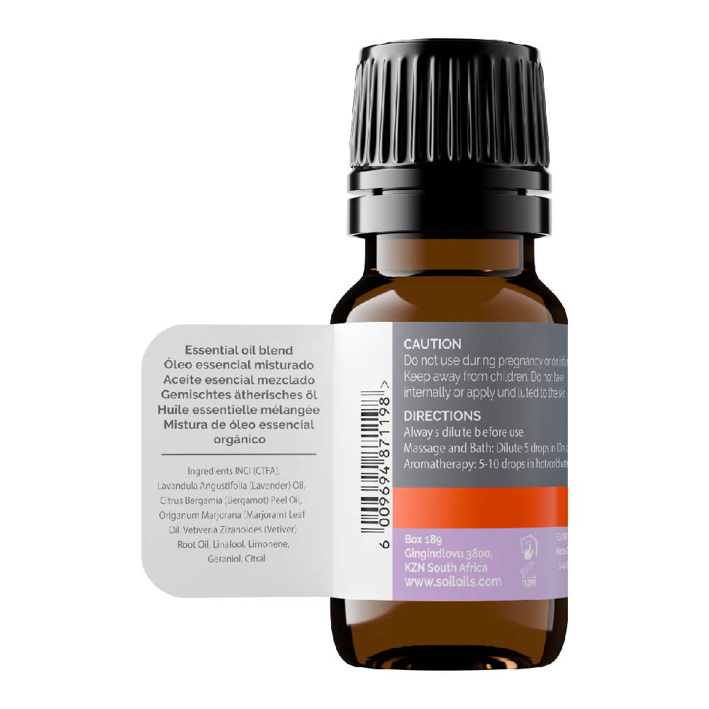 Contine un amestec exclusiv de uleiuri esentiale linistitoare naturale, pure, organice de Lavanda, Bergamota, Maghiran Dulce si Vetiver.