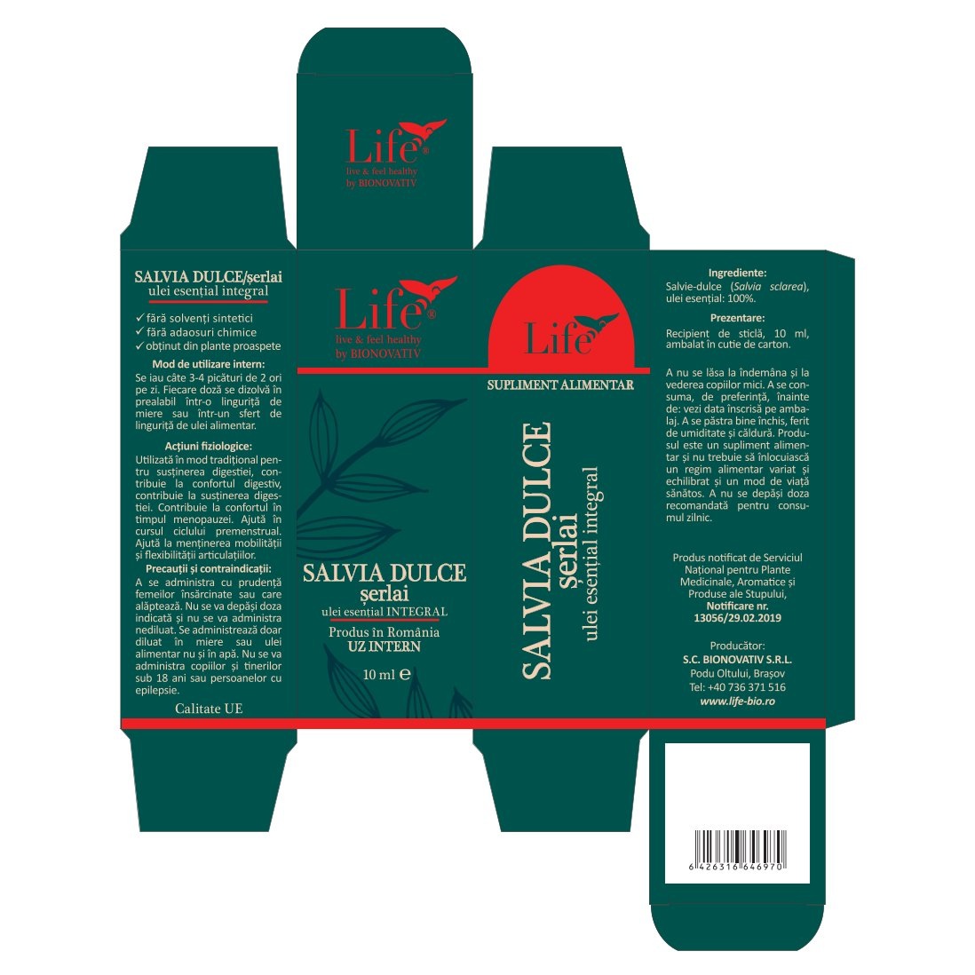 Informatii utile despre Ulei esential integral de salvie dulce Life, 10 ml, Bionovativ gasiti in articolele: Uleiuri esentiale.