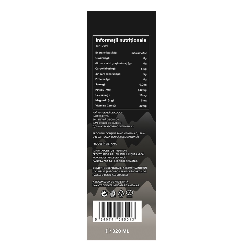 99.35% apa de cocos, 0.6% dioxid de carbon, 0.05% acid ascorbic (vitamina C).