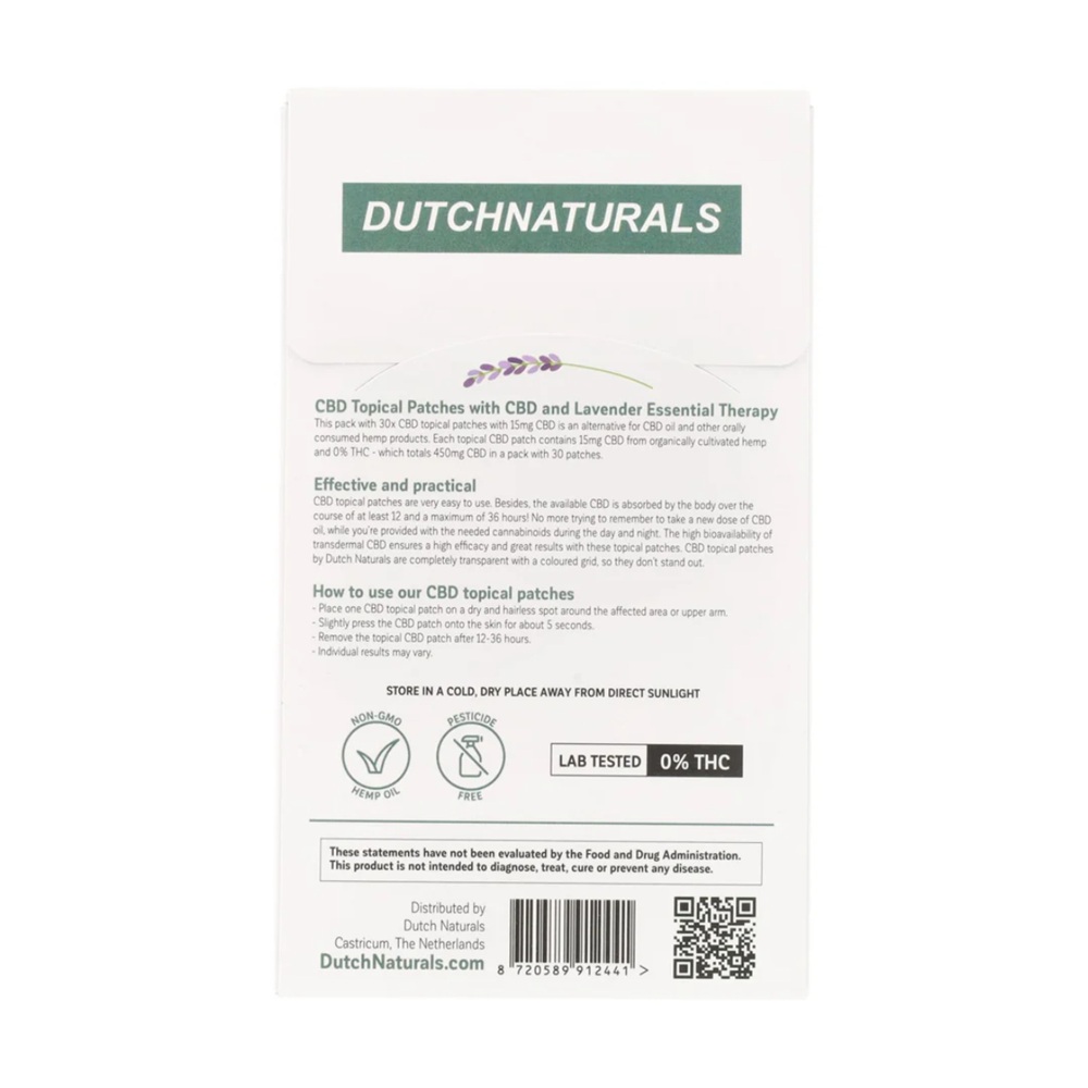 Precautii:Plasturii topici Dutchnaturals CBD isi pot pierde aderenta sau eficacitatea atunci cand se uda in timpul dusurilor sau bailor.