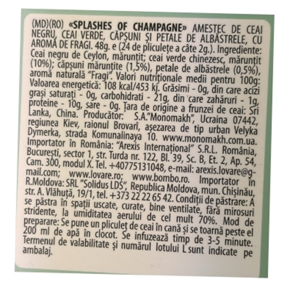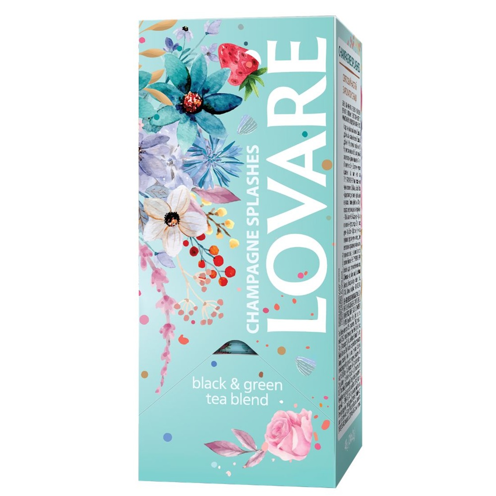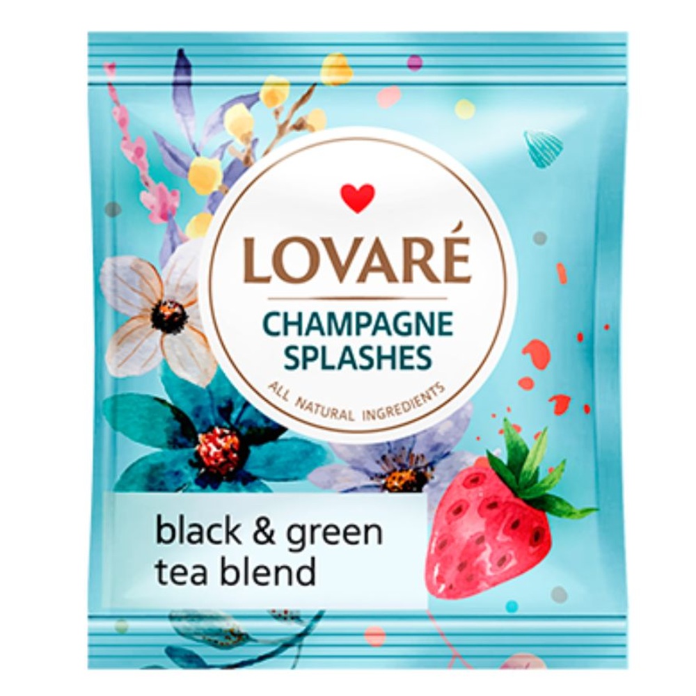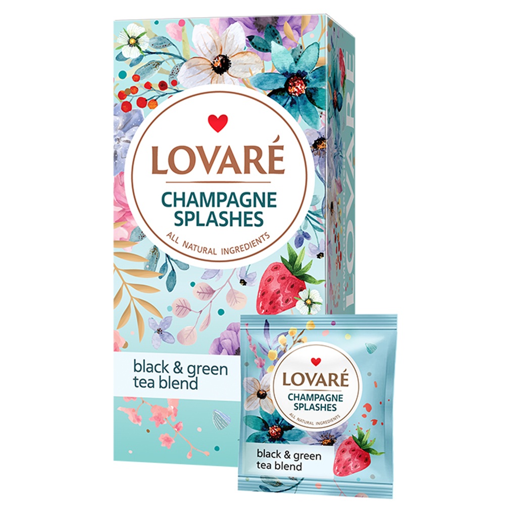 Amestec de ceai negru, ceai verde, capsune si petale de albastrele Champagne Splashes, 24 plicuri x 2 g, Lovare [4820198871147]