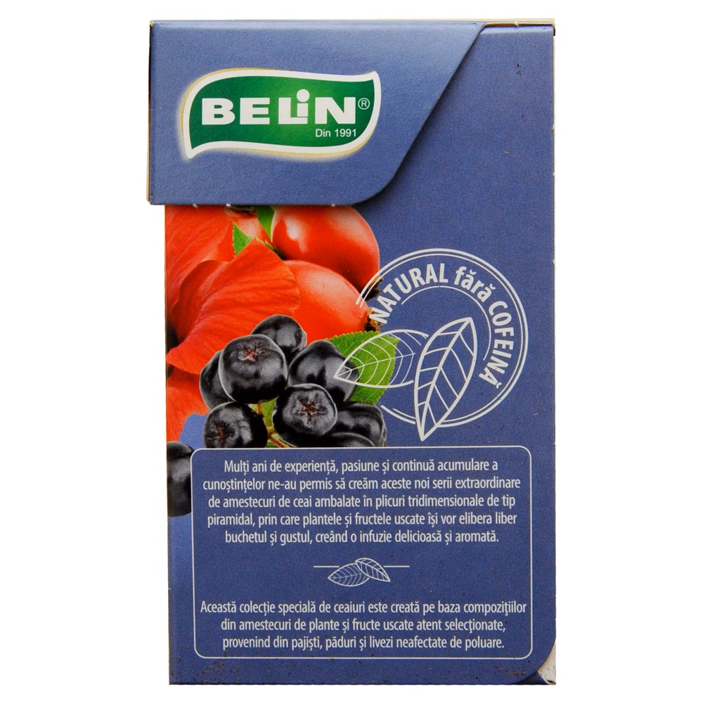 Flori de Hibiscus 42 %, Fructe de Mar, Coji de Portocale, Radacina de Lemn Dulce, Maces, Frunze de Mur 3 %, Mure 2,5 %, Aronia 2 %, Afine 2 %, Arome.