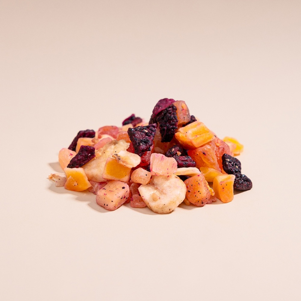 - aceasta infuzie exotica combina o varietate de fructe tropicale, creand un ceai plin de arome vibrante si beneficii nutritionalel