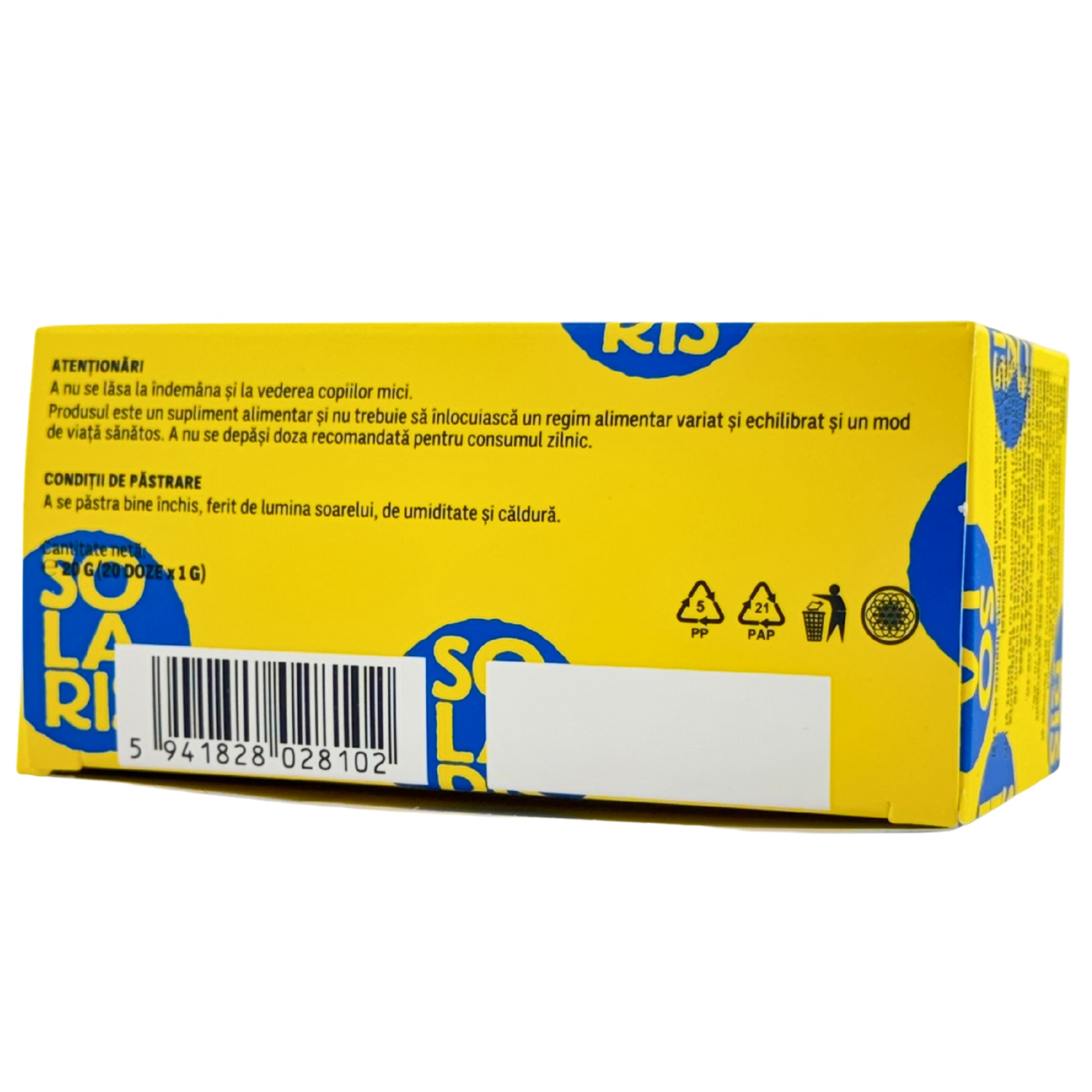 Produsul este un supliment alimentar si nu trebuie sa inlocuiasca un regim alimentar variat si echilibrat si un mod de viata sanatos.
