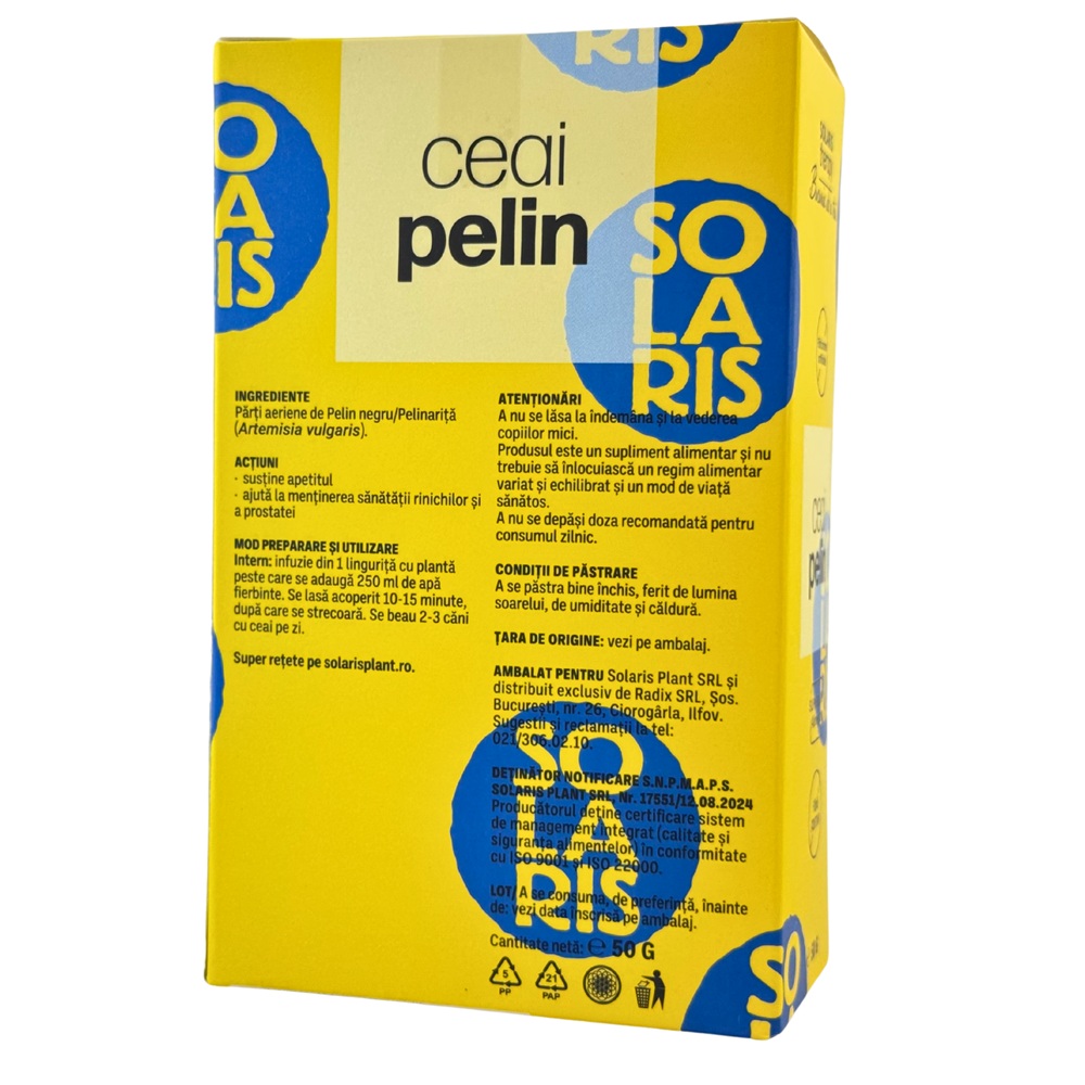 Ingrediente:Parti aeriene de Pelin negru/Pelinartita (Artemisia vulgaris).