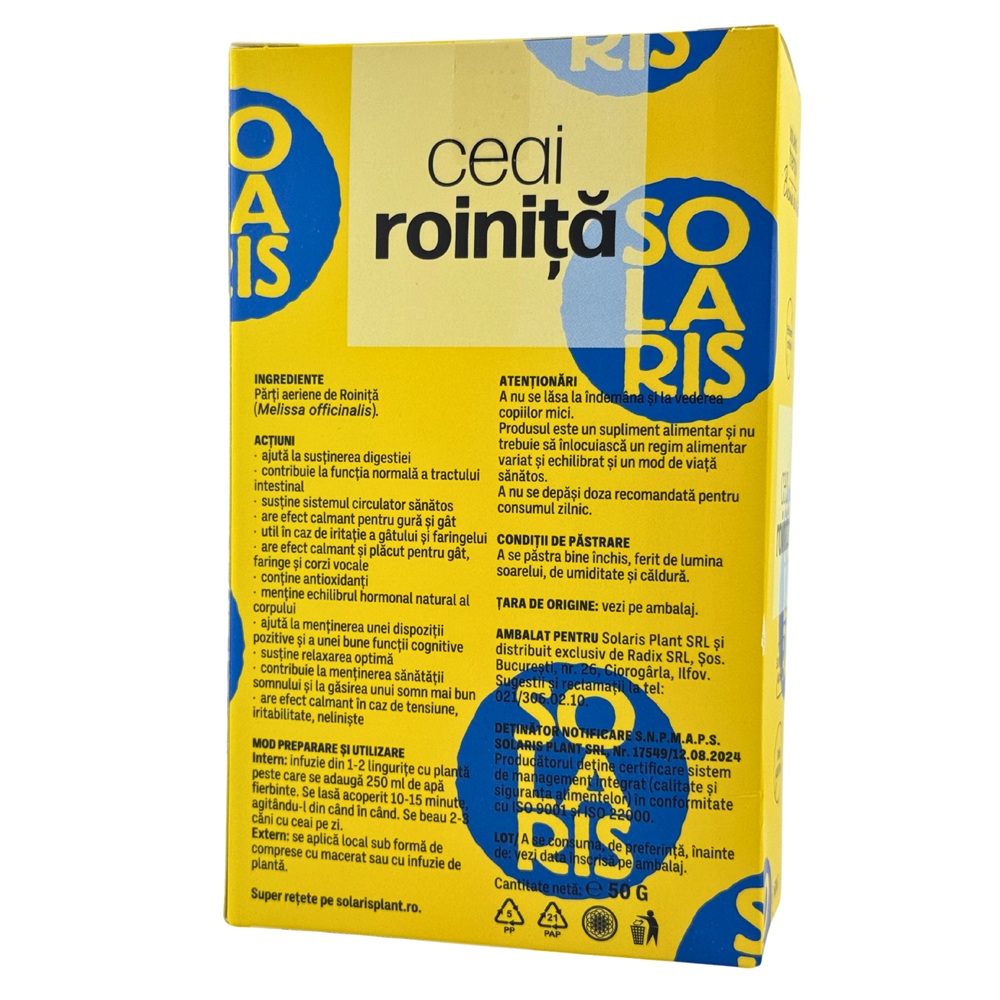 Produsul este un supliment alimentar si nu trebuie sa inlocuiasca un regim alimentar variat si echilibrat si un mod de viata sanatos.