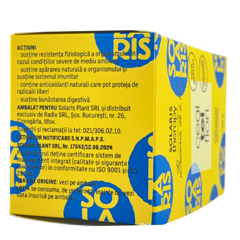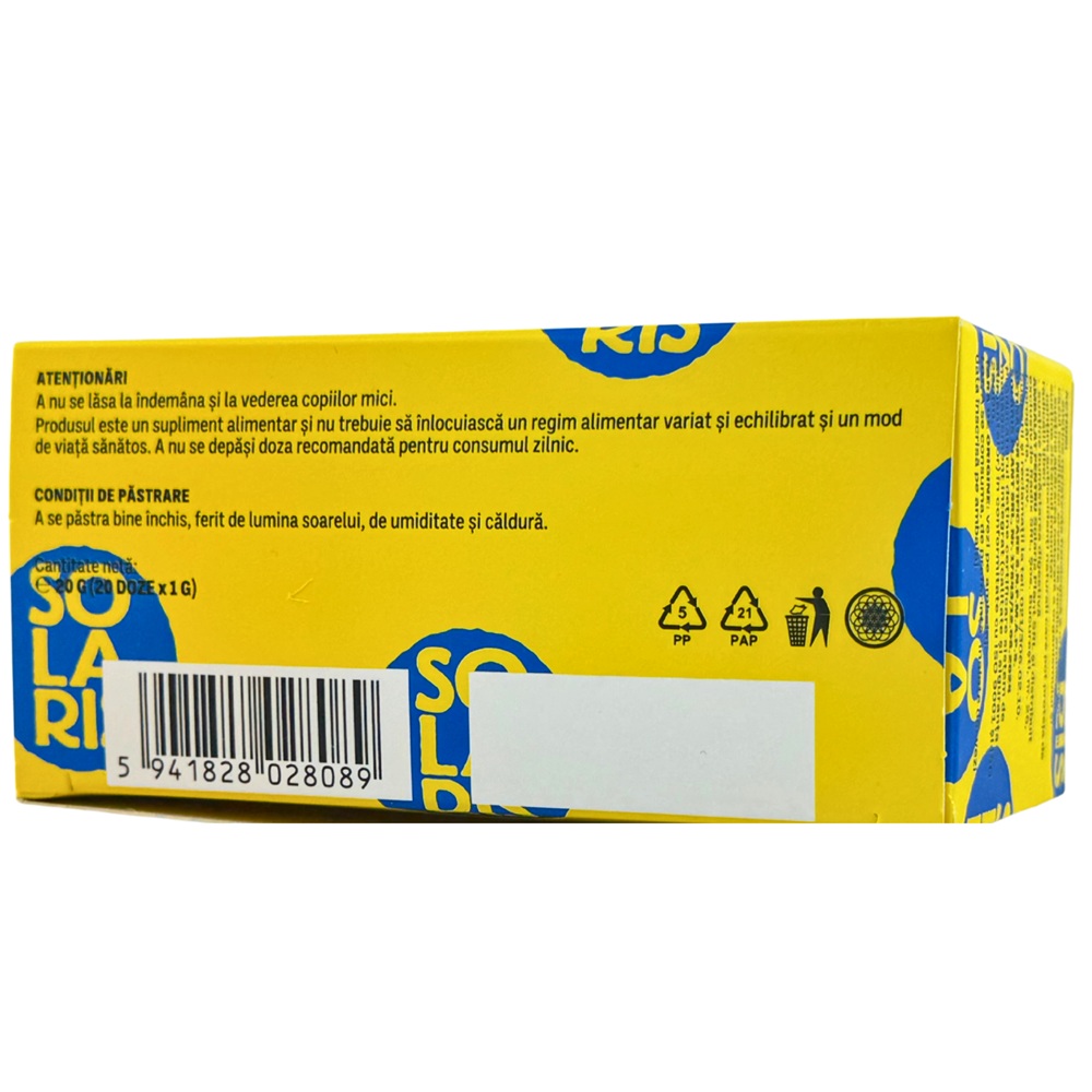 Produsul este un supliment alimentar si nu trebuie sa inlocuiasca un regim alimentar variat si echilibrat si un mod de viata sanatos.