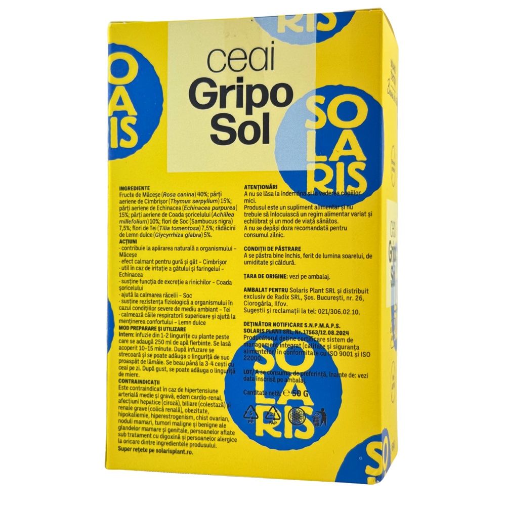 - combinatia de plante pot contribui la functionarea normala a sistemului imunitar si la confortul respirator, fiind un suport potrivit in caz de gripa si raceala.