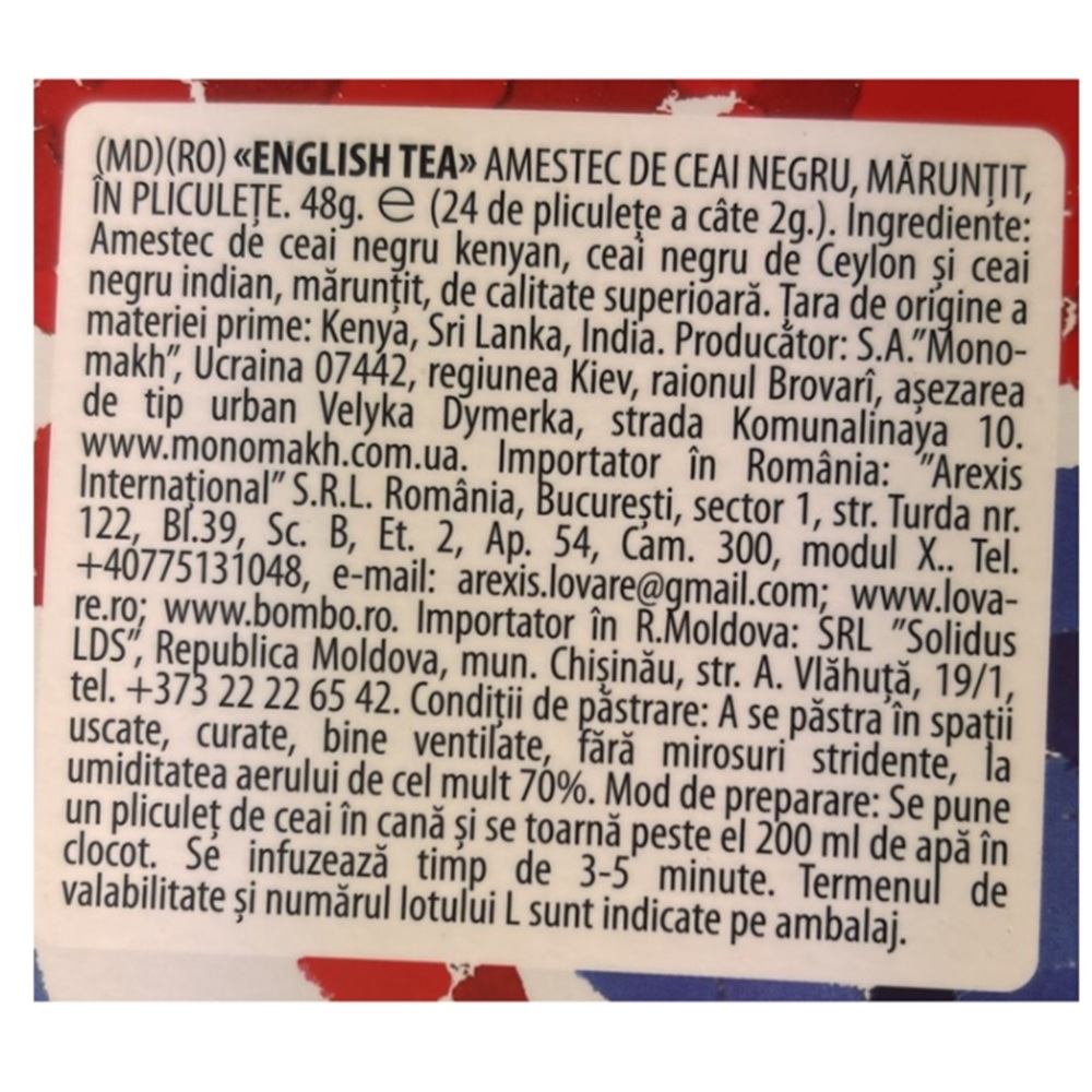 Ceai negru maruntit English Tea, 24 plicuri x 2 g, Lovare