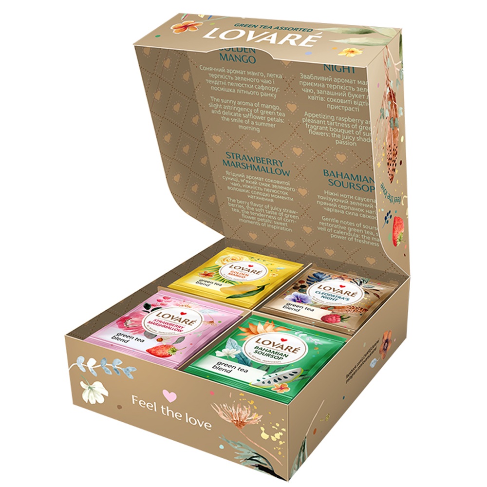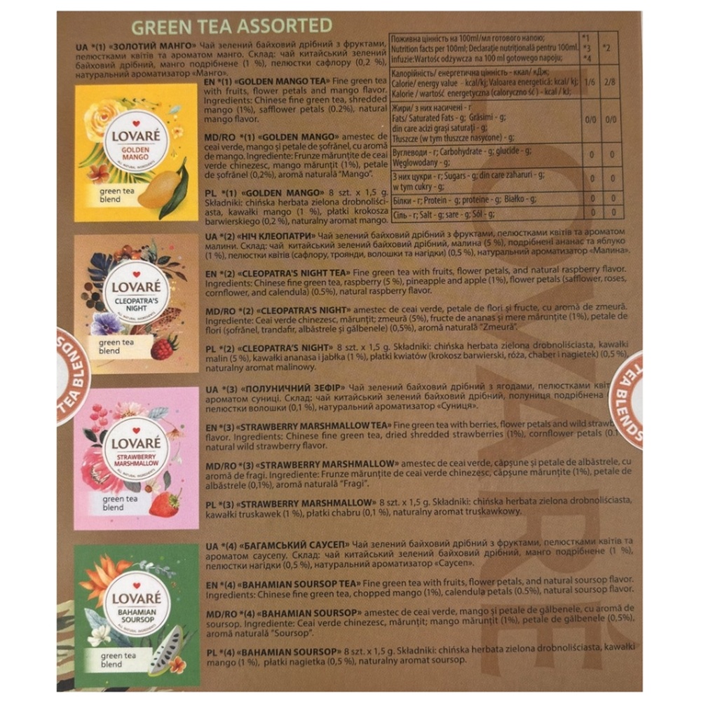 - golden mango: amestec de ceai verde, mango si petale de sofranel, cu aroma de mango;