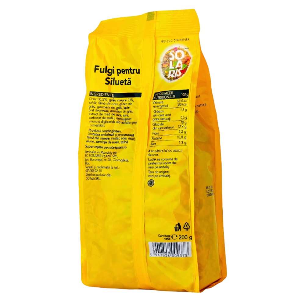 Ingrediente:Orez 50,5%, grau integral 23%, zahar, faina de orez, gluten din grau, germeni de grau, lapte praf degresat, amidon din grau, extract de malt de orz, sare, carbonat de sodiu, emulgator (mono si digliceride ale acizilor grasi comestibili).