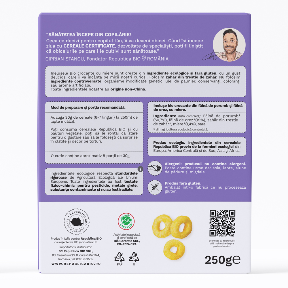 - ingredientele ecologice respecta standardele riguroase de Agricultura Ecologica ale Uniunii Europene;