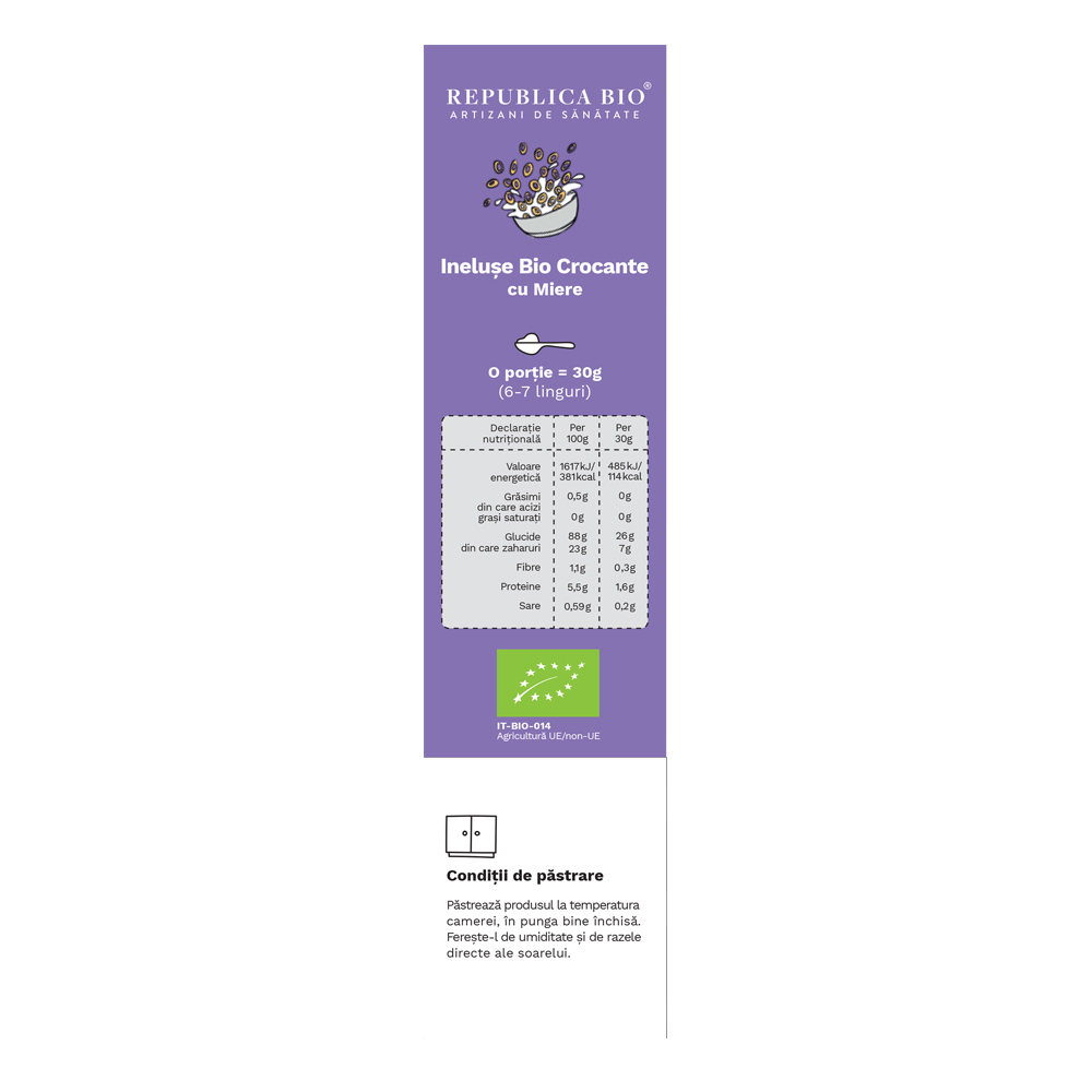 Precautii:Păstrează produsul la temperatura camerei, în punga bine închisă.