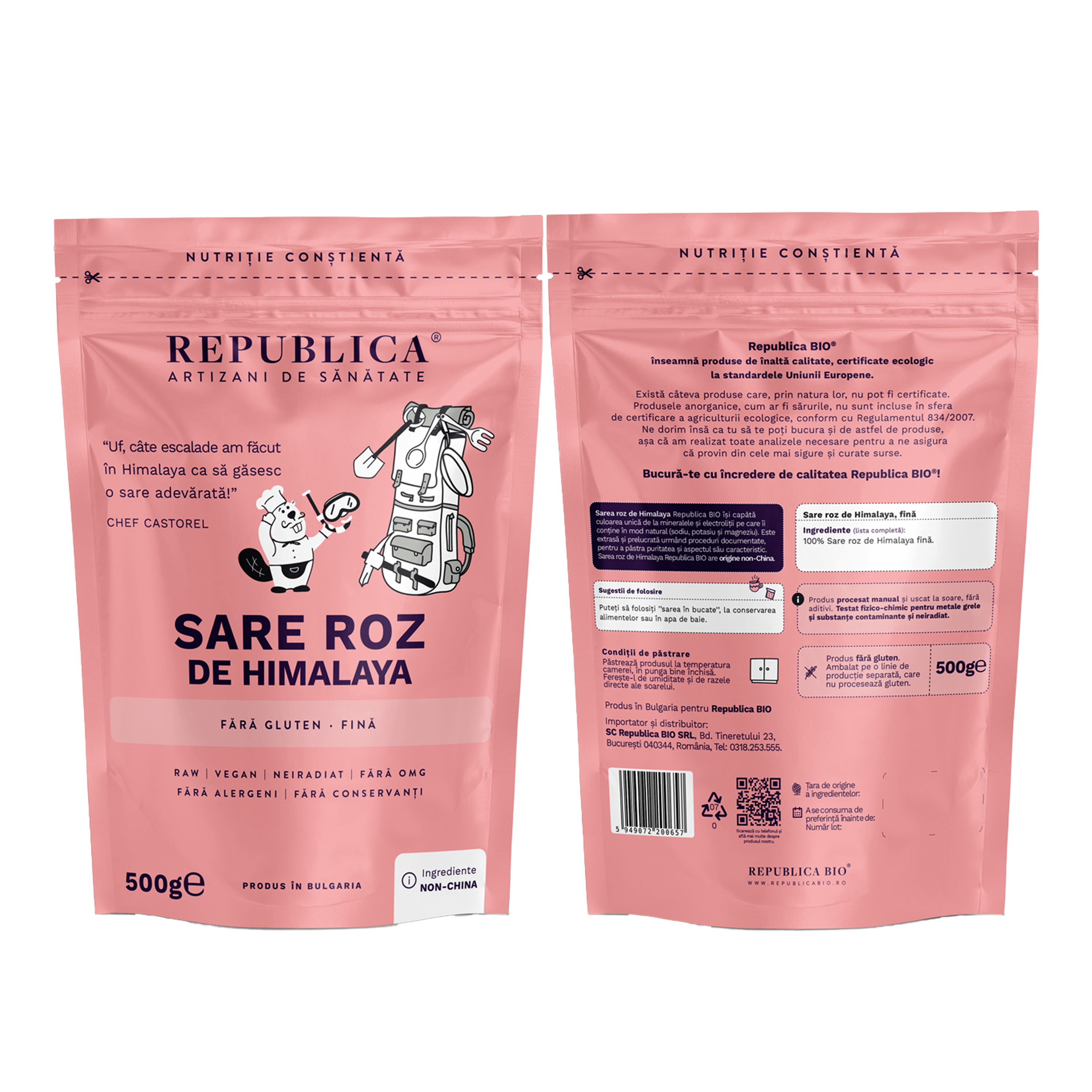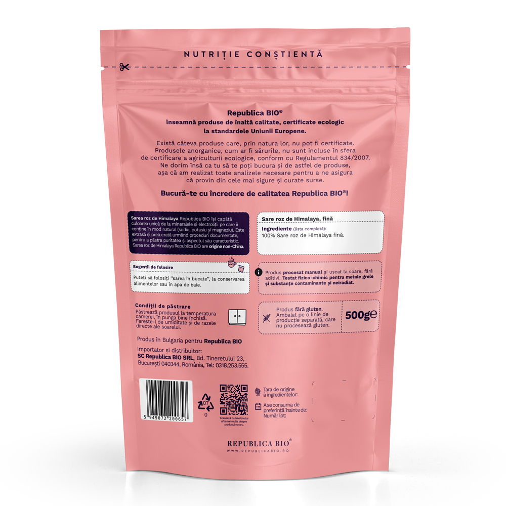 Sare fina roz de Himalaya Bio, 500 g, Republica Bio [5949072200657]