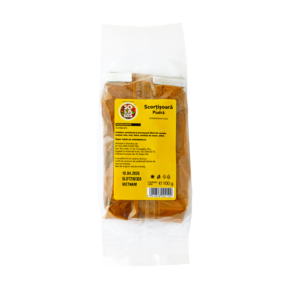 Scorțișoară pudră este obținută din scoarță de scorțișoară atent selecționată și fin măcinată, având o aromă caldă, dulce-picantă, ideală pentru aromatizarea deserturilor, băuturilor și preparatelor culinare.