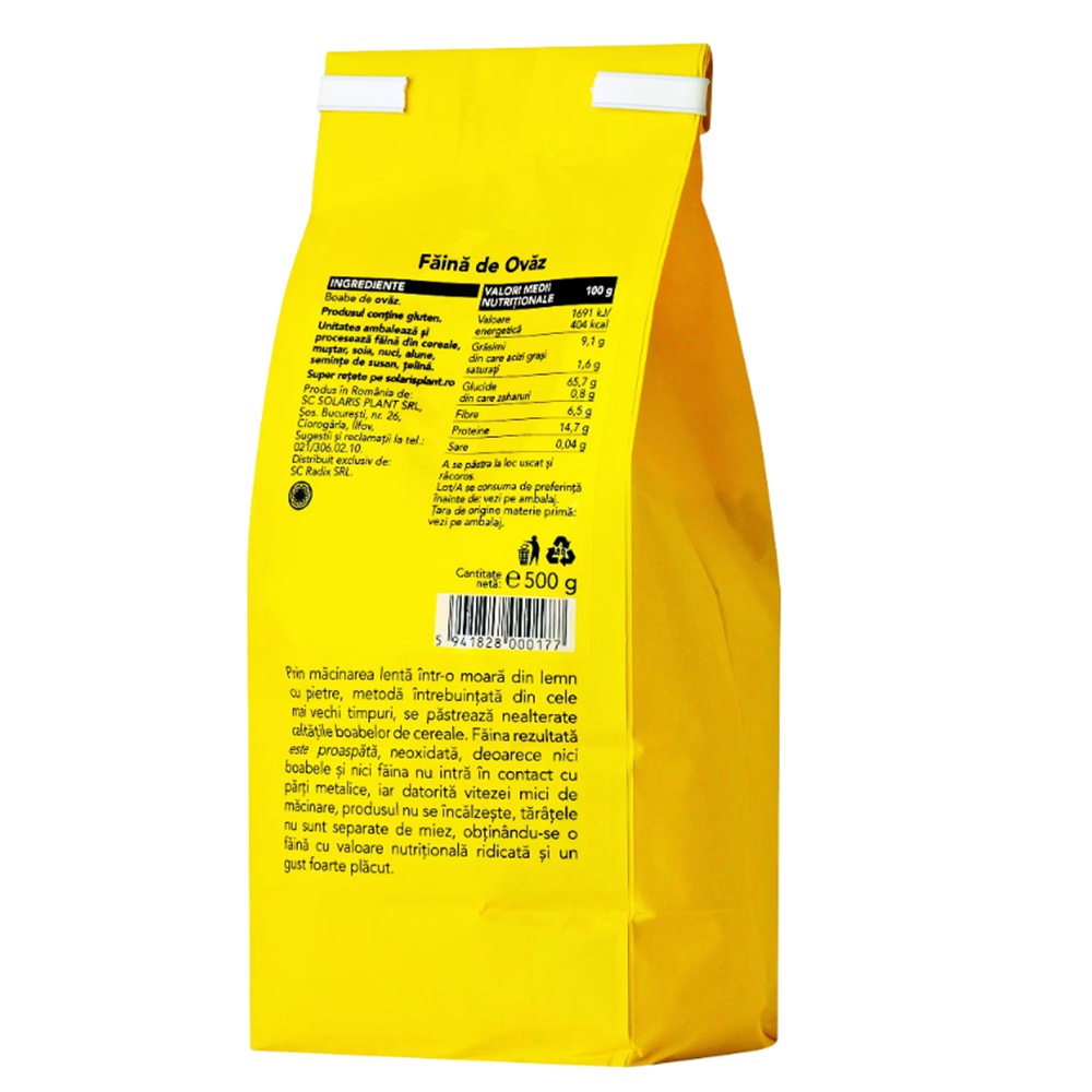 - faina obtinuta prin macinarea lenta pe o moara traditionala cu pietre a boabelor de ovaz;