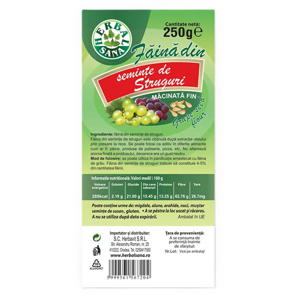 - faina din seminte de struguri, obtinuta dupa extractia uleiului prin presare la rece;