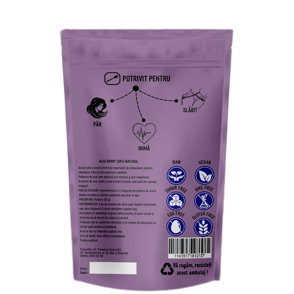 Ingrediente:Pulbere Acai Berry-100%.