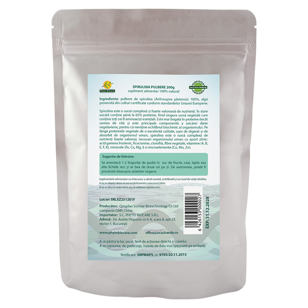 Pulbere de spirulina, 200 g, Phyto Biocare