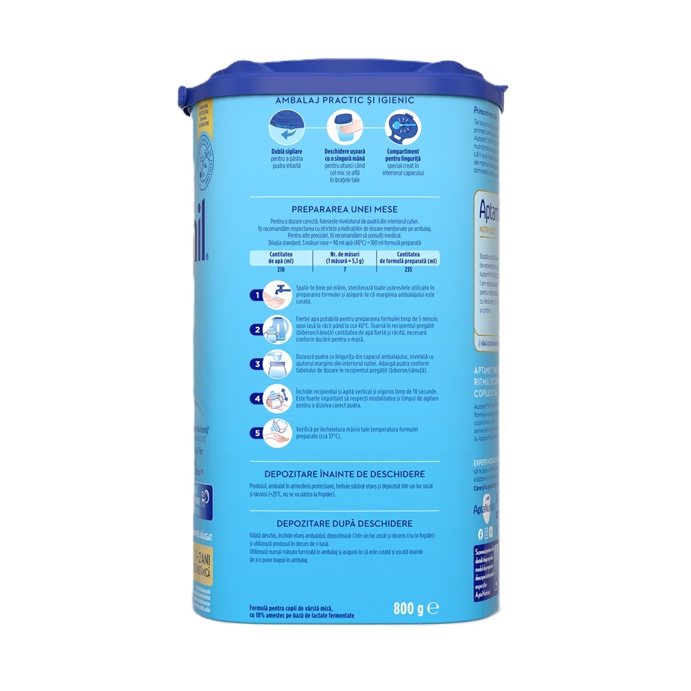 - Aptamil Nutri-Biotik contine imuno-nutrienti (vitaminele C si D), fibre, calciu;