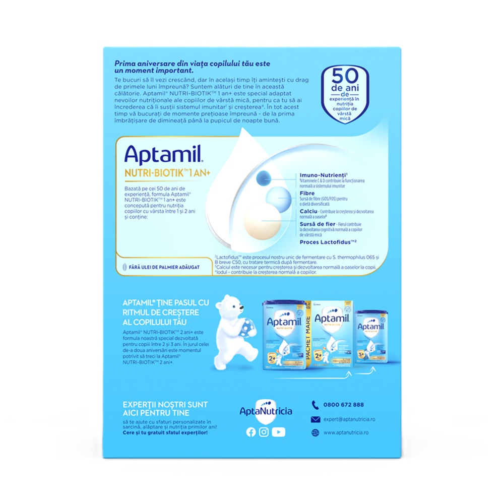 - Aptamil Nutri-Biotik contine imuno-nutrienti (vitaminele C si D), fibre, calciu;