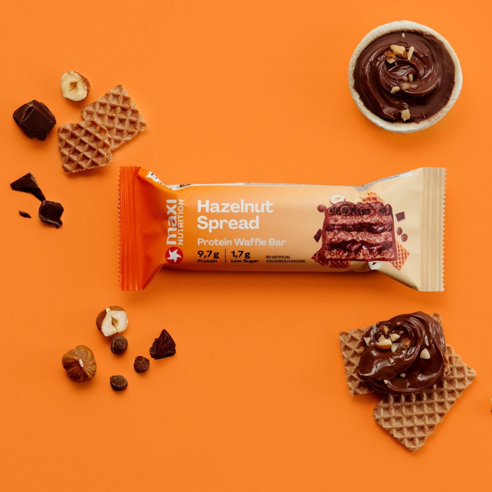 - napolitana proteica acoperita cu 35% ciocolată cu lapte, 40% umplutură de ciocolată cu alune de padure bogată în proteine, 8% bucatele crocante din proteine de soia și 6% boabe de soia tocate;