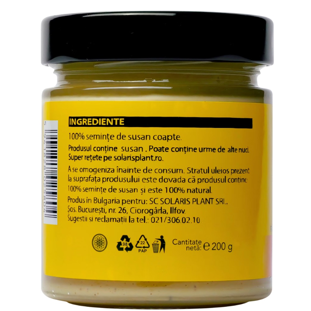 Stratul uleios prezent la suprafata produsului este dovada ca produsul contine 100% seminte de susan si este 100% natural.
