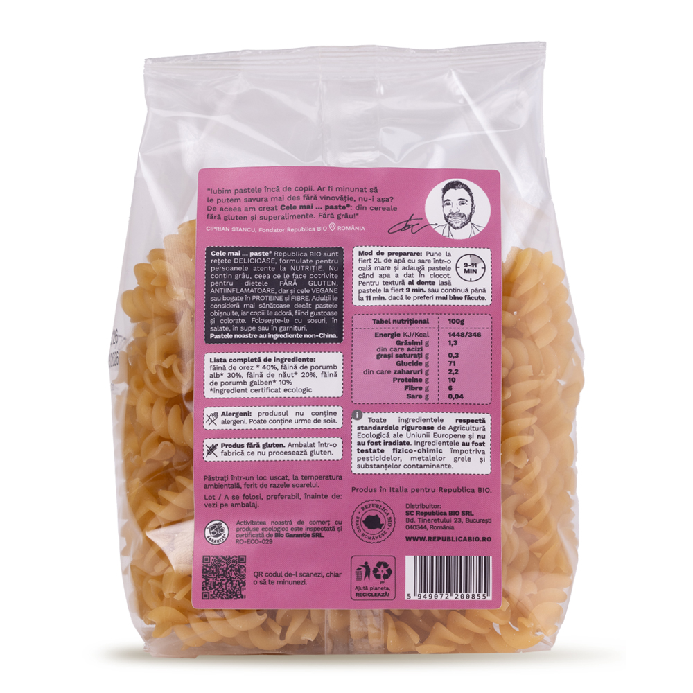 Paste eco, fara gluten, din orez, porumb, naut Reteta nr. 2, 250 g, Republica Bio [5949072200855]
