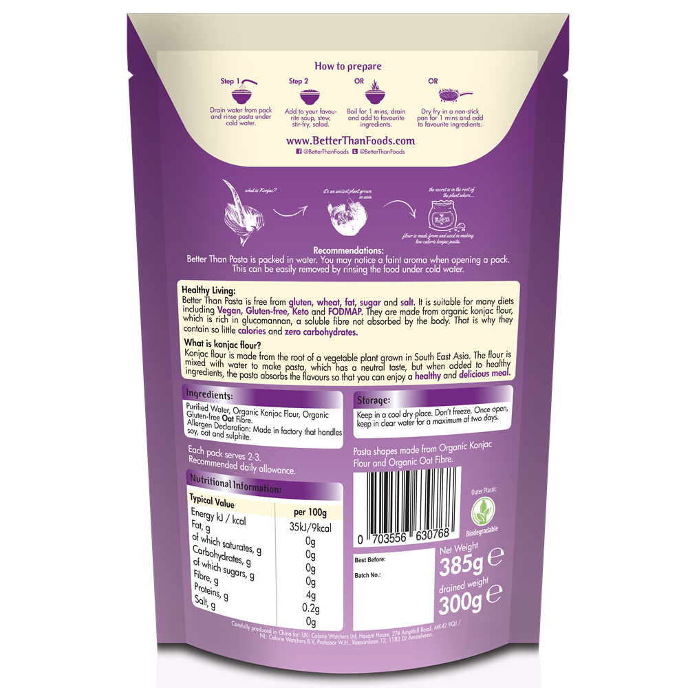 Apa purificata, faina organica de Konnyaku (konjac), fibre de OVAZ.