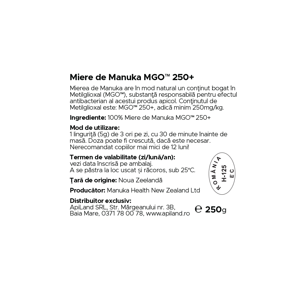 - poate fi utila in cazul infectiilor bacteriene rezistente datorita concentratiei MGO 250+;