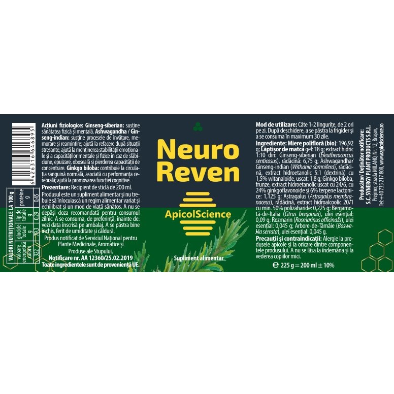 Miere poliflora Neuro Reven, 200 ml, ApicolScience [6426316646895]