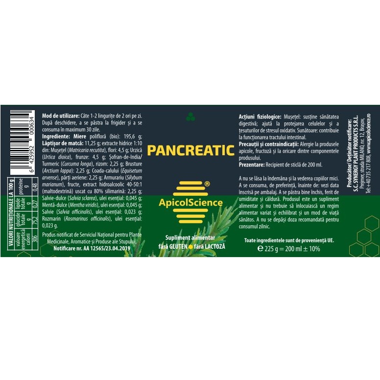 Miere poliflora Pancreatic, 200 ml, ApicolScience [6425952000634]