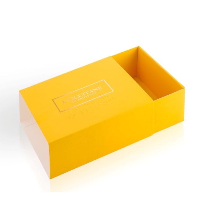 - culoare: galben intens, cu logo L’OCCITANE imprimat in argintiu;