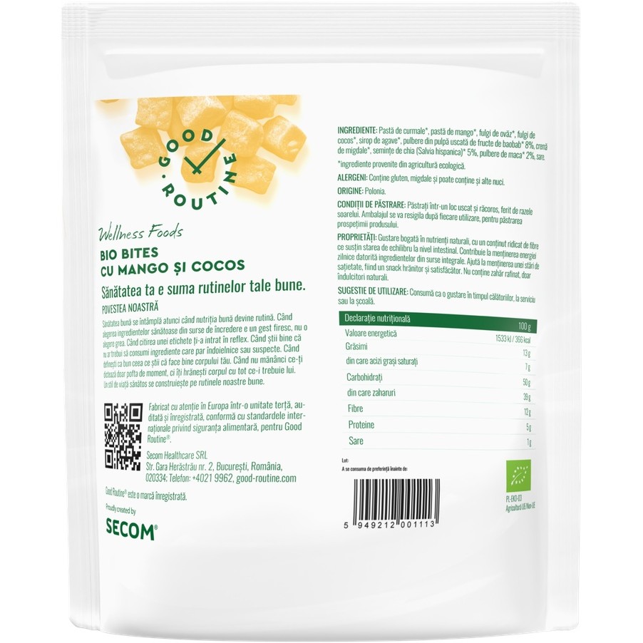 Bio Bites cu mango si cocos Good Routine, 120 g, Secom