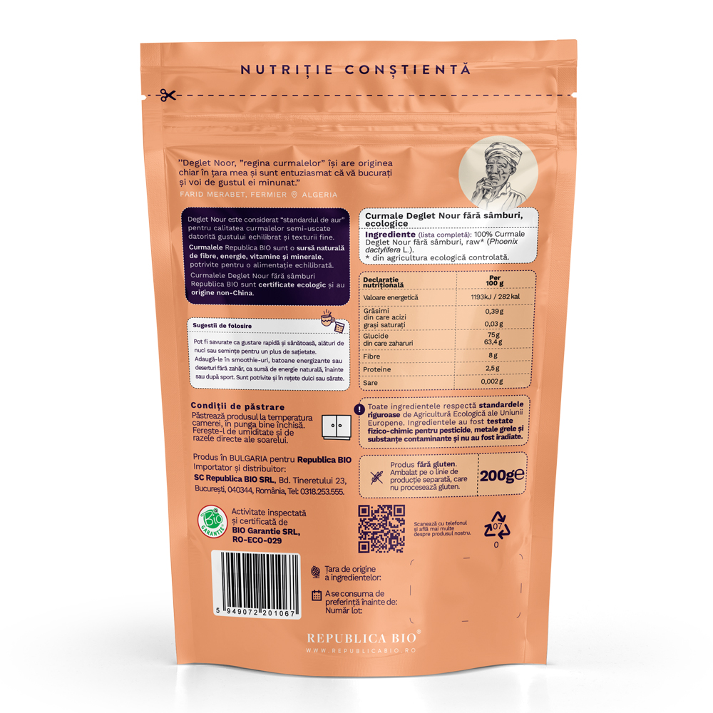 Curmale fara samburi eco Deglet Nour, 200 g, Republica Bio [5949072201067]