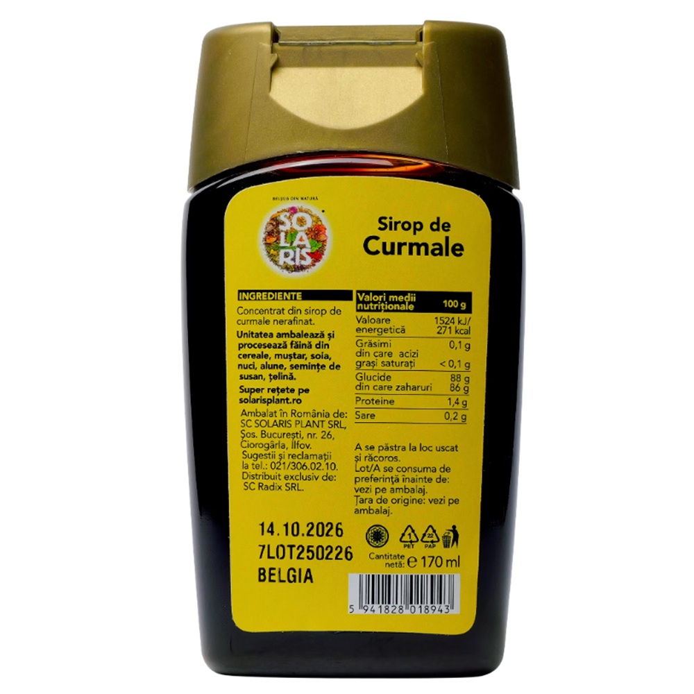 Ingrediente:Concentrat din sirop de curmale nerafinat.
