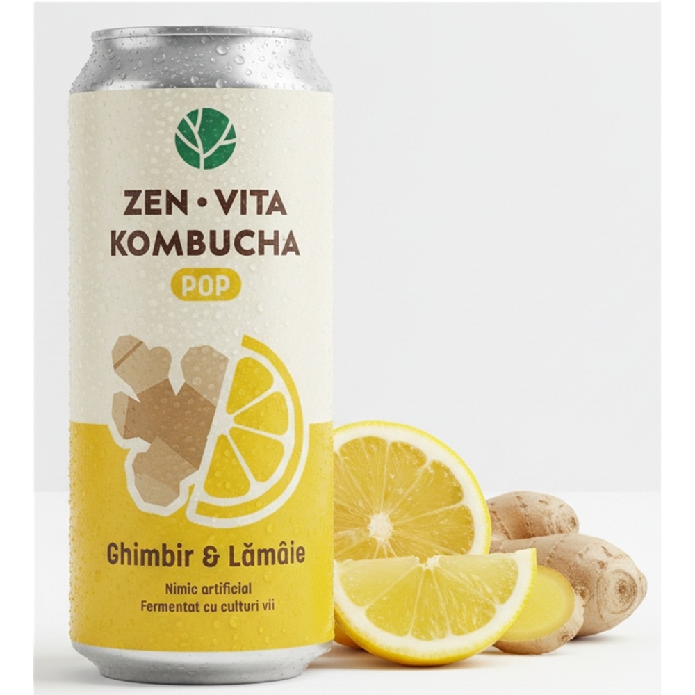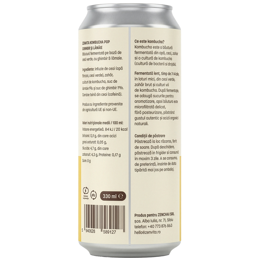 Bautura fermentata din ceai cu ghimbir si lamaie Kombucha Pop, 330 ml, Zenvita [5940628589127]