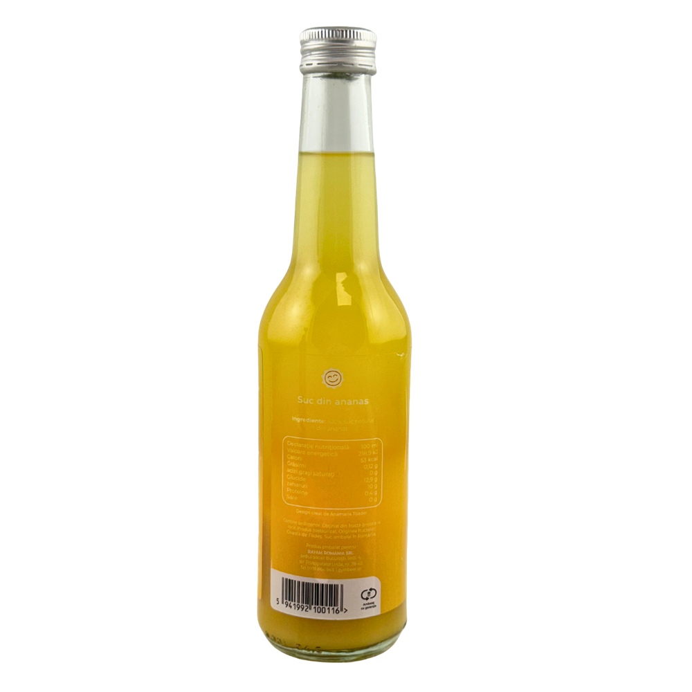 Ingrediente:100% suc natural din ananas, obtinut prin presare la rece.