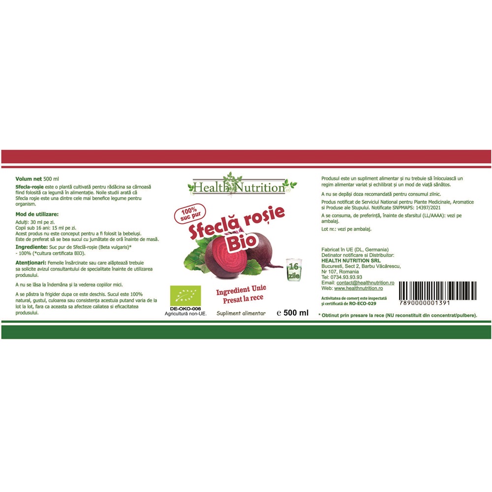- supliment alimentar cu sfecla rosie;
