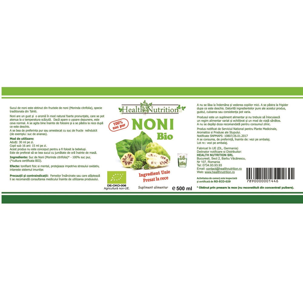 Informatii utile despre Suc Noni Bio, 500 ml, Health Nutrition gasiti in articolele: Eco, Bio, Organic - Ce inseamna si care este diferenta dintre ele?.