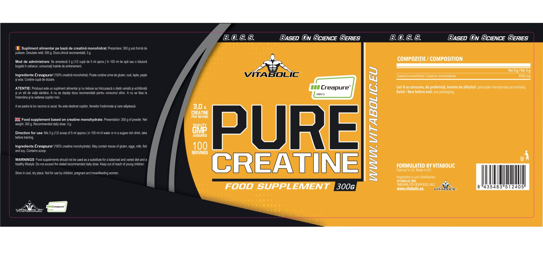 Ingrediente:Creatina Monohidrata Micronizata (AlzChem Creapure®). Contine cupa de dozare.